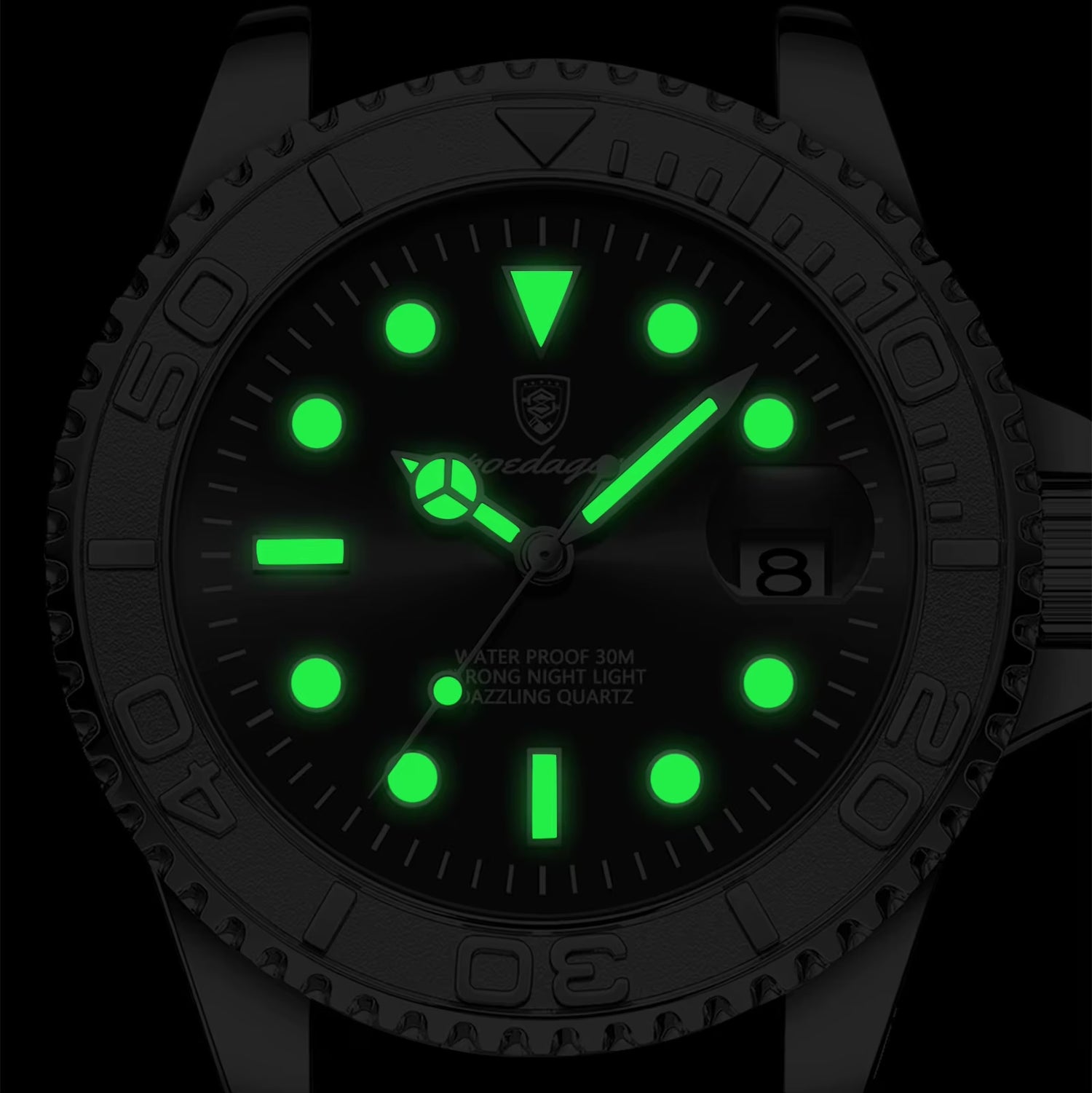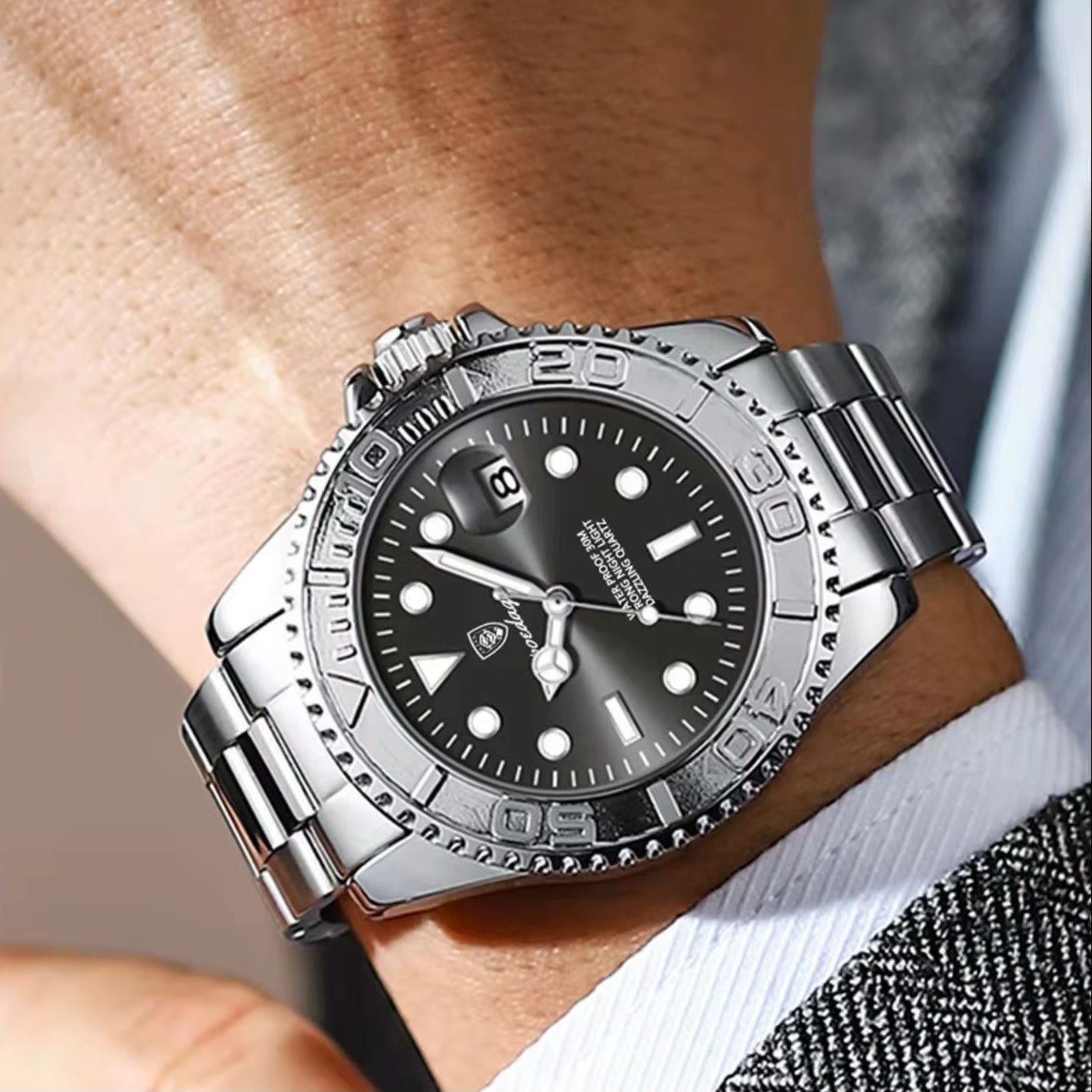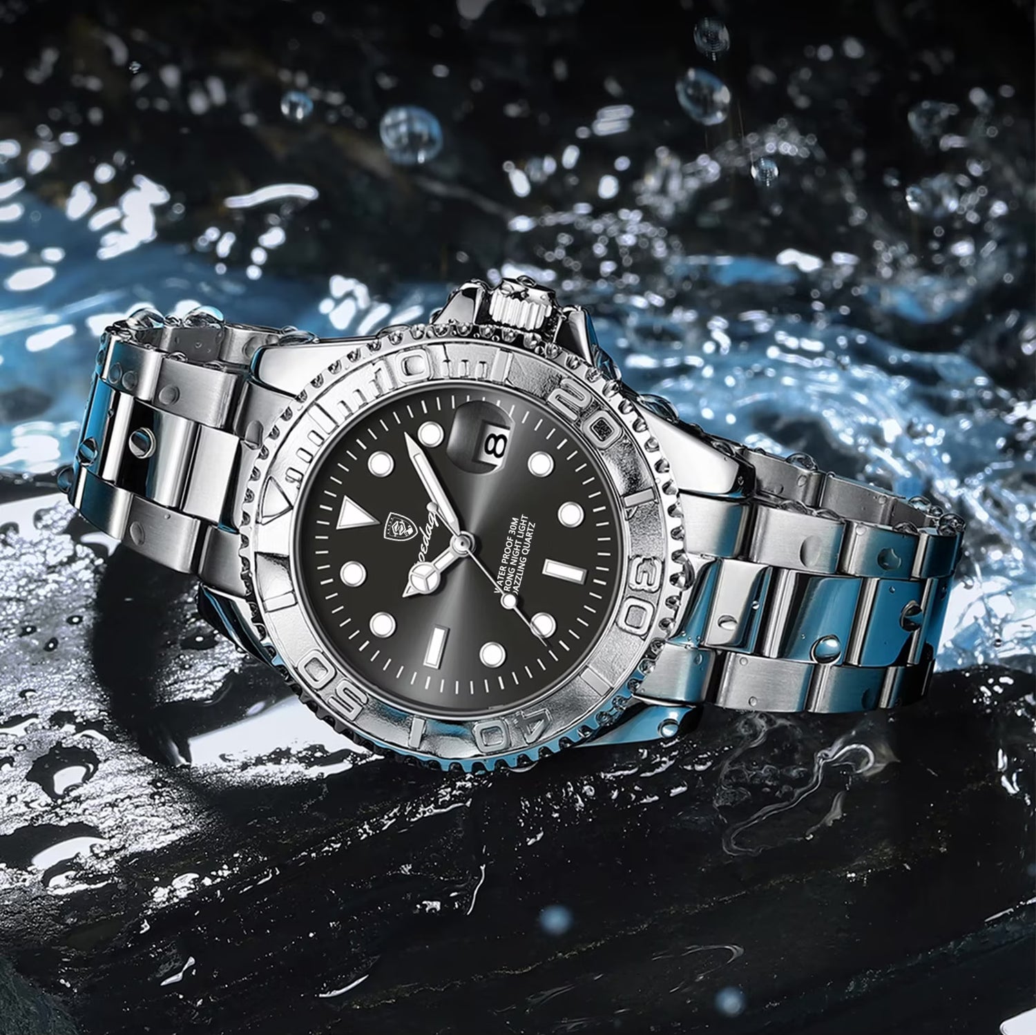 Conçue pour les aventuriers modernes, cette montre combine le caractère d’un design plongeur iconique à la fiabilité d’un mouvement quartz précis. Son bracelet en acier inoxydable, sa lunette crantée et ses aiguilles lumineuses en font une pièce puissante et raffinée, pensée pour accompagner chaque défi avec style et performance.