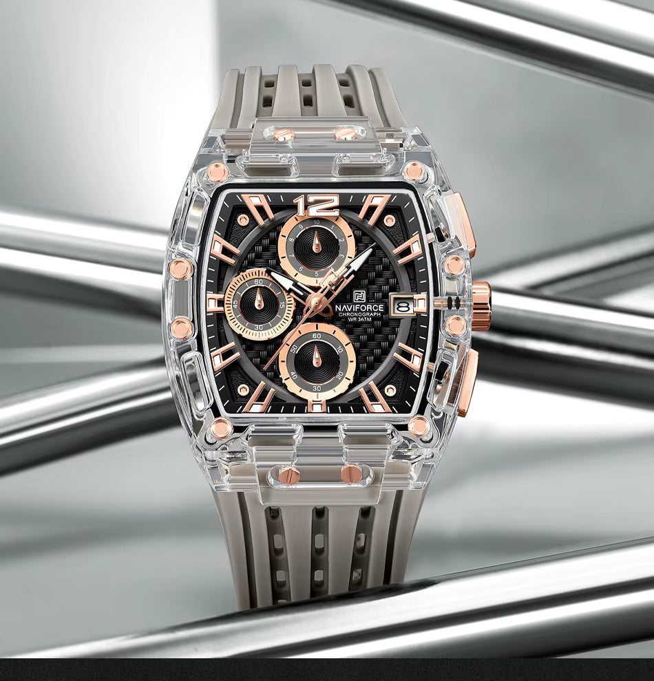 Son bracelet en silicone haute qualité s’adapte naturellement à la forme de votre poignet, offrant un confort exceptionnel tout en résistant à l’usure du quotidien. Son fermoir robuste assure un maintien fiable en toutes circonstances, tandis que son étanchéité 30M vous permet d’affronter la plupart des situations de la vie courante sans crainte des éclaboussures.Le verre minéral renforcé protège le cadran avec une solidité remarquable, préservant son éclat et sa clarté jour après jour. Une montre conçue pour durer et vous suivre dans toutes vos aventures.